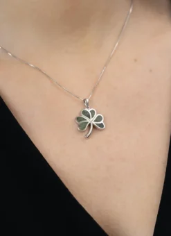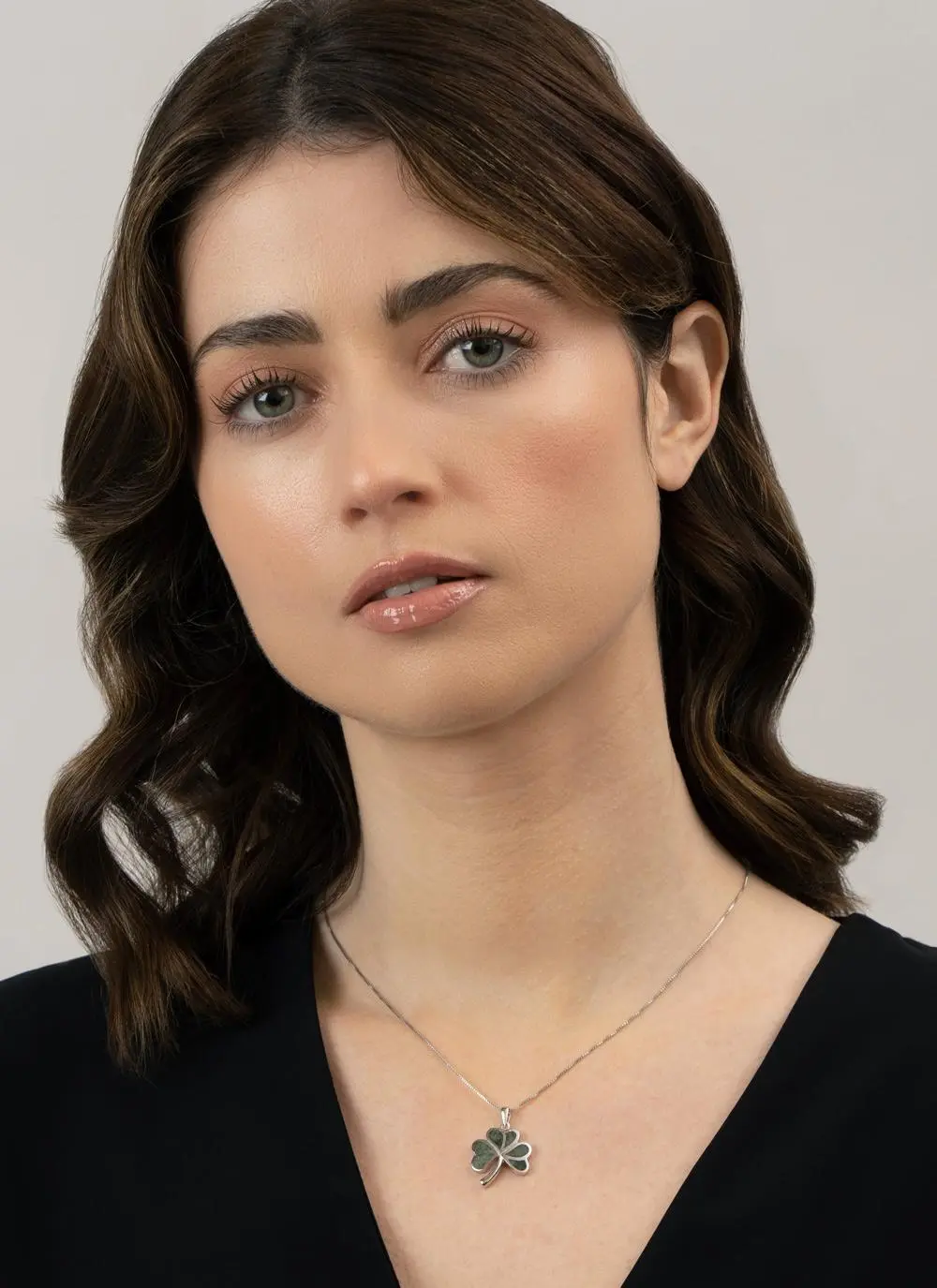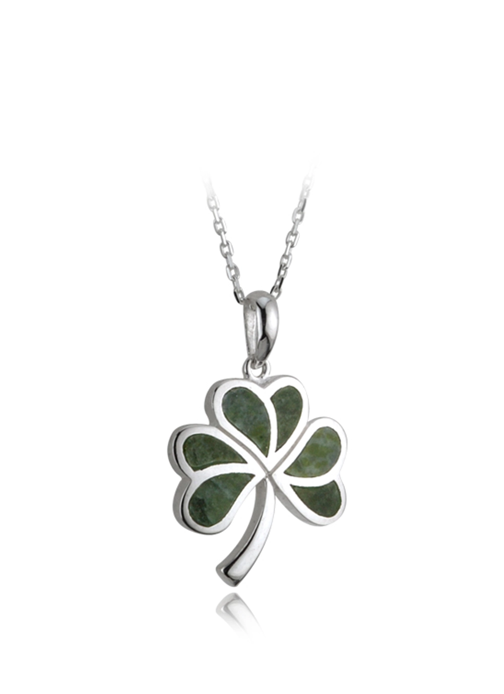 Our shamrock pendant has been embedded with Connemara marble to create a green marble finish. Connemara marble can only be found in Connemara in the West of Ireland, making it one of the oldest and rarest marbles in the world. The shamrock is said to bring good luck to all who wear it.