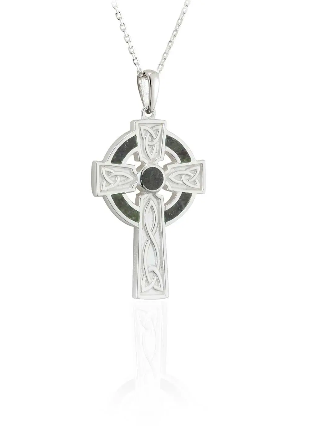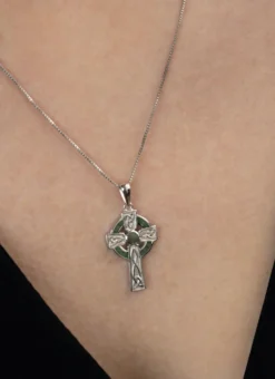 Delicately crafted from sterling silver and Connemara marble, this Celtic cross is truly unique as no two pieces of Connemara marble are identical. Found exclusively in the West of Ireland, it is one of the world’s oldest minerals and rarest marbles in the world.