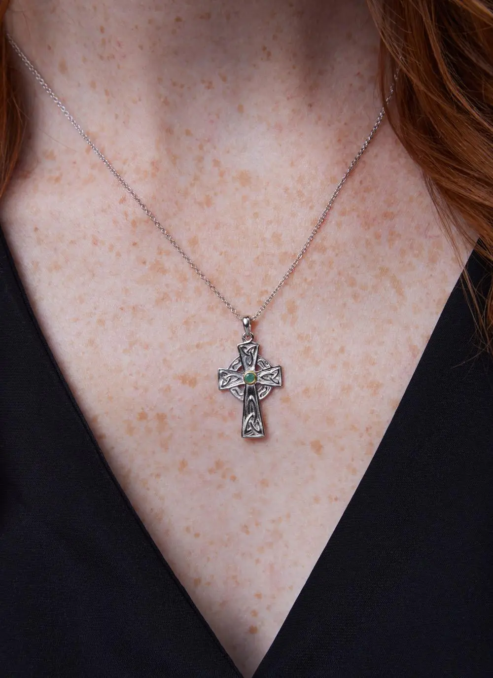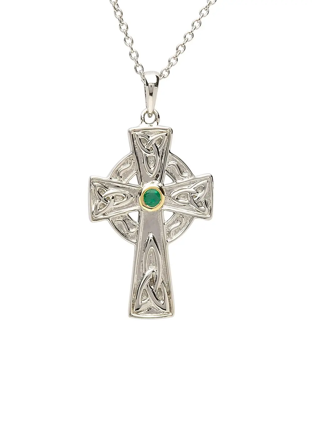 For centuries, the Celtic Cross has marked sacred places all over Ireland. Each one has its own tale to tell – with stories from scripture, carved in stone, preserved for future generations. This sterling silver emerald cross, with gold plate detailing, is the perfect representation of your Celtic love.