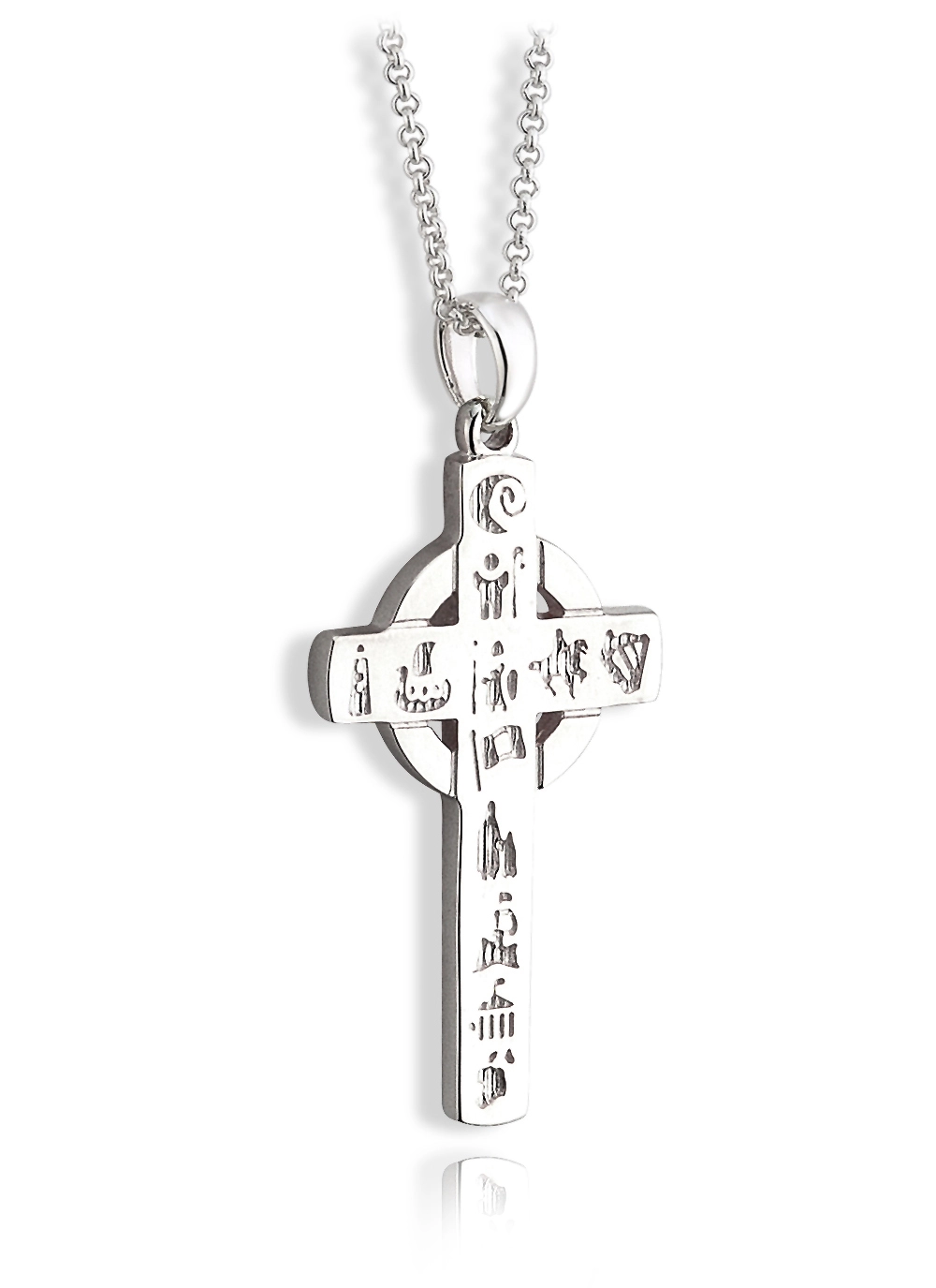 This beautiful Celtic cross pendant is made in Ireland. It is etched with twelve symbols, each symbol expresses a key story or event in Ireland’s heritage and history, from the Neolithic age right through to the partition of Ireland in 1920. A beautiful gift to signify Ireland’s long and diverse history.