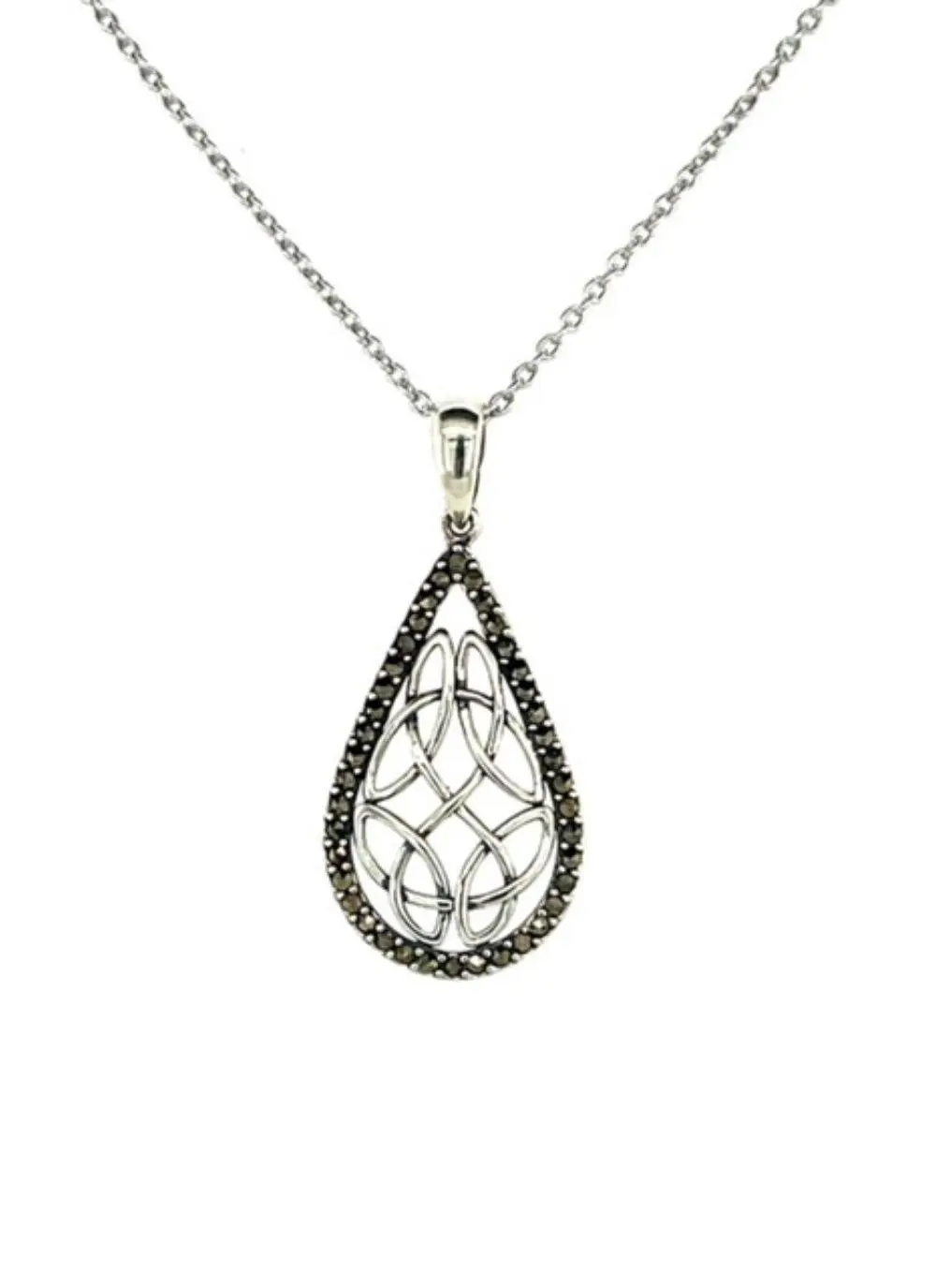 This sterling silver pendant is enduringly elegant. It features an intricate Celtic knot motif set in a marcasite-studded tear drop frame. Hallmarked in Ireland, it makes a stunning Irish gift for the jewelry lover in your life.
