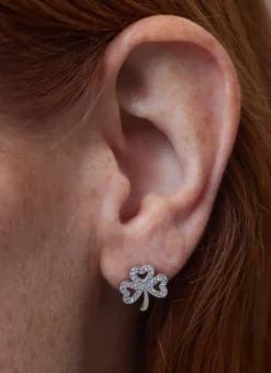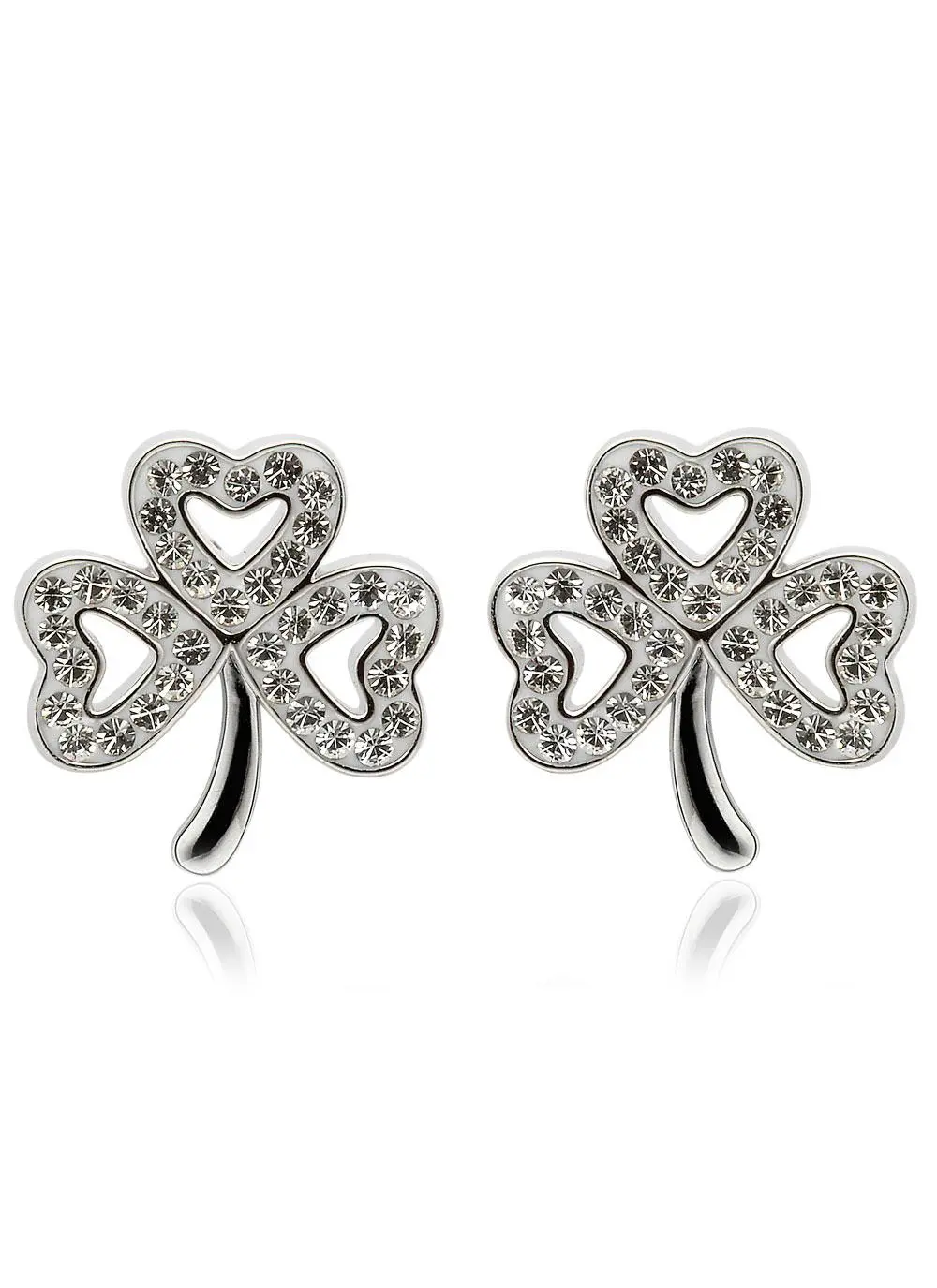 This stunning pair of shamrock stud earrings is handcrafted in Ireland from sterling silver. Each leaf of the Shamrock is beautifully embellished with Swarovski white crystals. The Irish shamrock is a symbol of good luck and good fortune, making this pair of earrings the ideal Irish gift for a loved one.