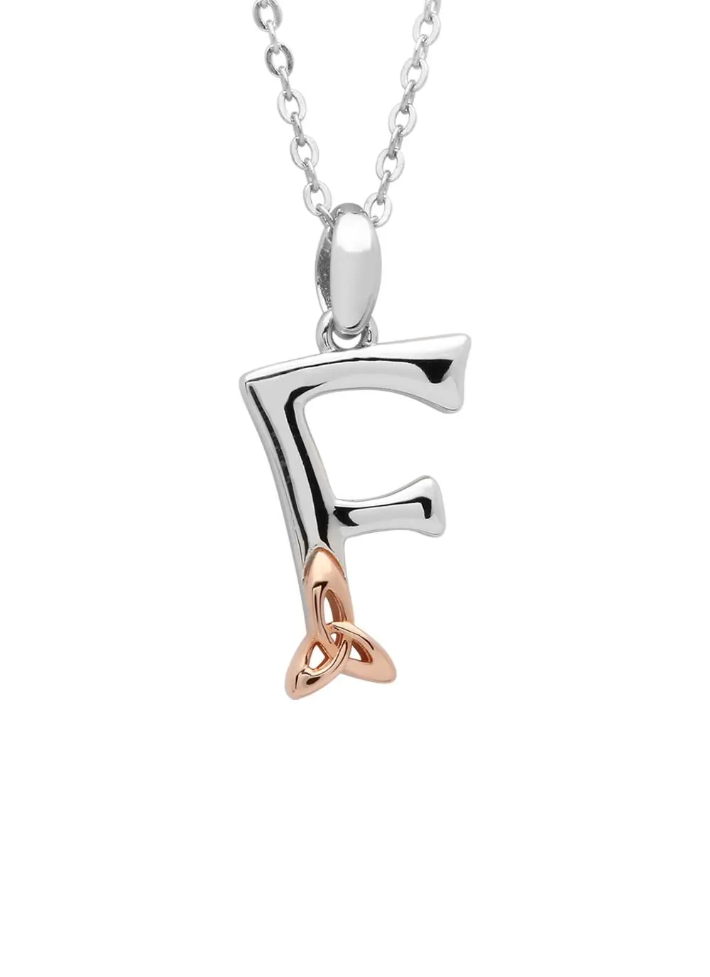 Show the world the initial that means the most to you; is it your own, or the one you love? This sterling silver necklace features a single initial beautifully designed with a rose gold plated trinity knot. The perfect meaningful gift for you or someone special.