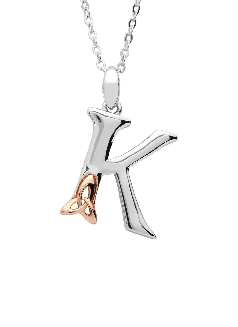 Show the world the initial that means the most to you; is it your own, or the one you love? This sterling silver necklace features a single initial beautifully designed with a rose gold plated trinity knot. The perfect meaningful gift for you or someone special.