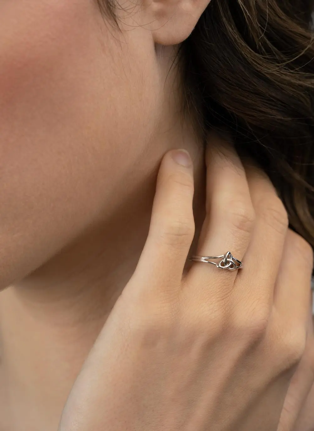 This stunning Sterling Silver Trinity Knot Celtic ring is simple yet elegant. It features the Trinity Knot which is a traditional Celtic design symbolizing the mind, body and soul. It is also said to represent the promise to love, honor and protect. Skillfully handcrafted in Ireland, this ring is the perfect Irish gift for her!