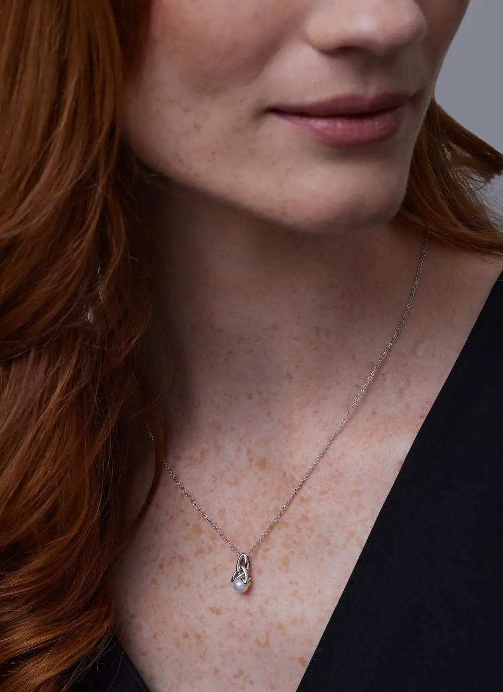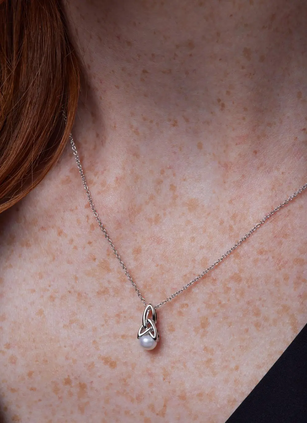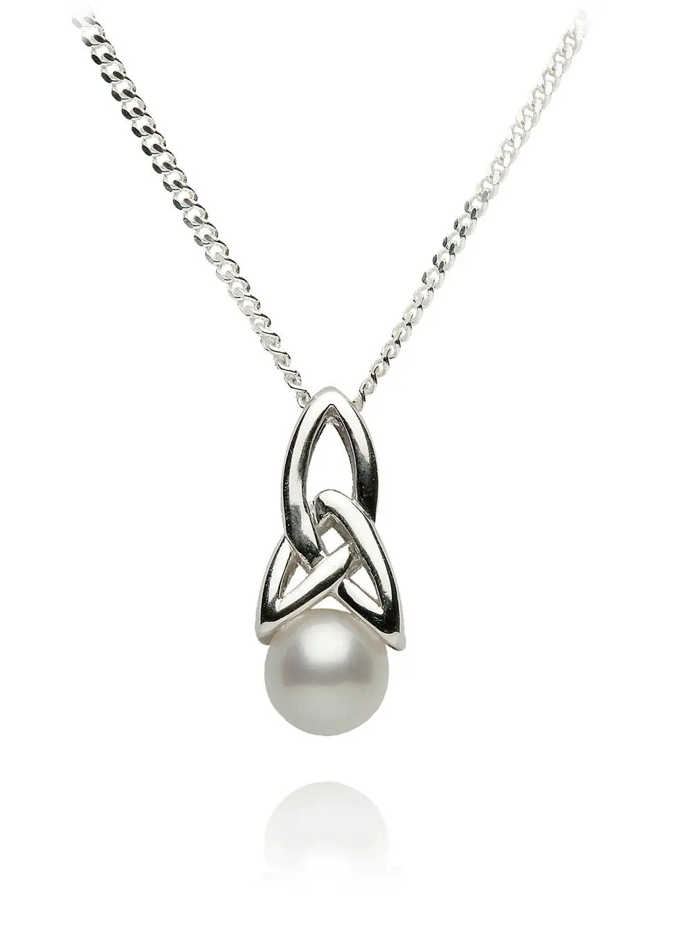 This beautifully crafted pendant combines the simplicity of pearls with the intricacy of the Celtic Trinity knot to create a timeless piece of exquisite Celtic jewelry. Pearls have long been revered as one of the world’s most beautiful gems and are the ideal Irish gift for those special occasions.