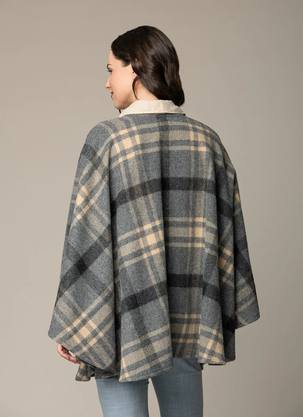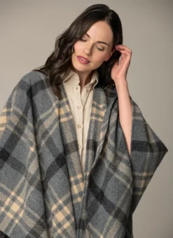 Our Sue wrap is made in Ireland in 100% lambswool which has been brushed for a very soft hand feel. It has a gorgeous swing silhouette and is woven in a classic multi-colored check pattern.Â