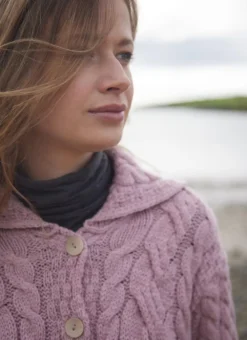 Knit in Ireland with luxuriously soft Merino wool, this Aran cardigan is a stylish and comfortable layer. It features an elegant cable stitch pattern with two front pockets, a flat collar and front button closure. A timeless addition to your knitwear collection!