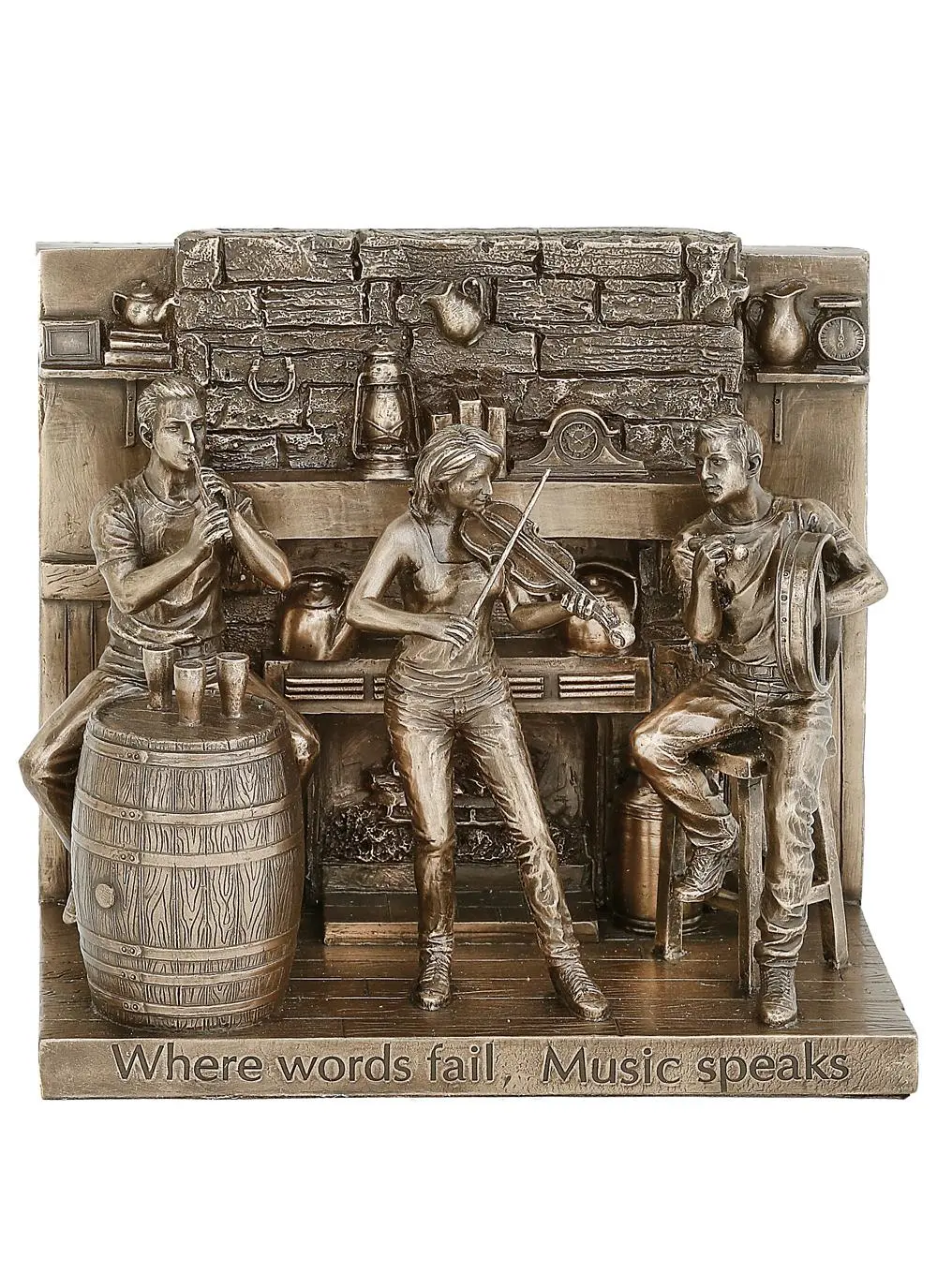 Show appreciation for your Irish heritage with The Session Ornament from Genesis Fine Arts. This extremely detailed piece of craftsmanship features a scene from a traditional Irish music session. Celtic symbols and instruments, such as tin whistle and bodhrán, allow you to pay homage to your Irish roots. Guaranteed to be a wonderful addition to any collection or present to a loved one who has a special interest in music.