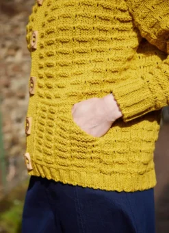Add something unique to your knitwear collection with this beautiful woolen cardigan, knit in County Clare with 100% wool. Full of texture and detail, it is finished with statement toggle fastening, a ribbed flat collar and two functional front pockets. A warm and stylish layer with perennial appeal.