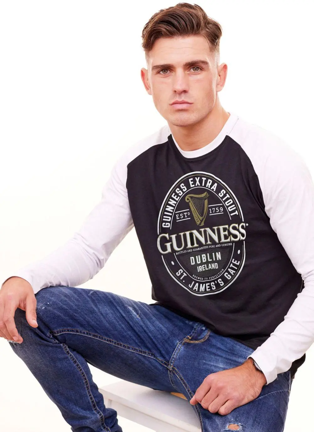 Casually cool, this unisex long sleeve t-shirt is a weekend wardrobe staple. Crafted from soft cotton, it boasts contrasting sleeves and the Guinness signature logo embroidered on the chest.