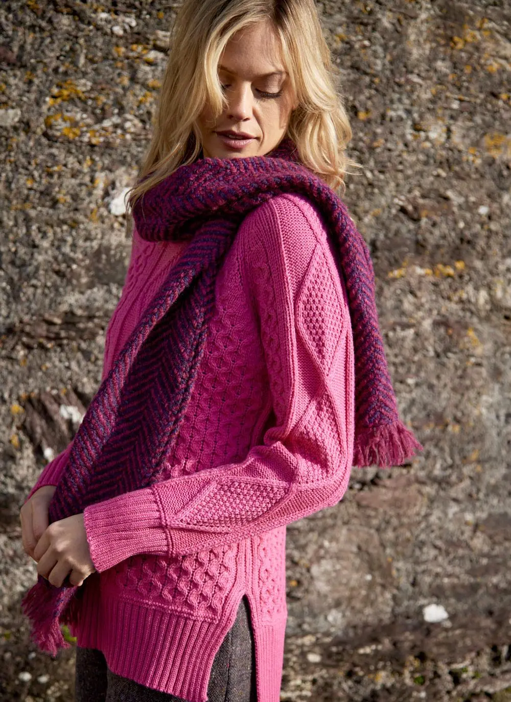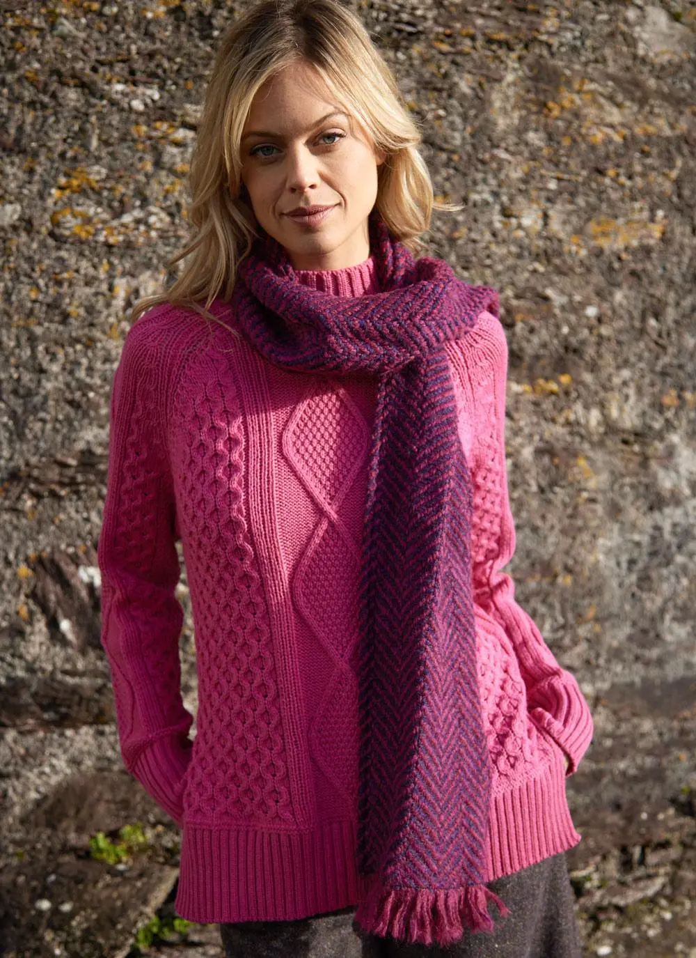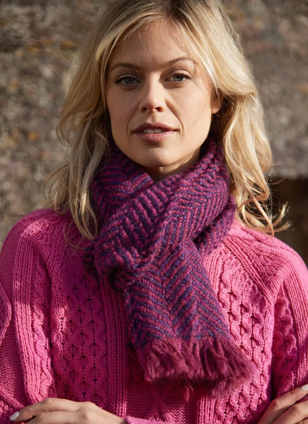 Made here in Ireland, our enduringly popular fringed country scarf embraces heritage chic for the modern woman. It is beautifully woven in a classic wool blend that will add warmth, texture and style to your look.Â